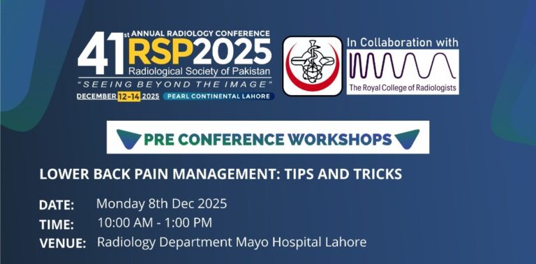 The Radiological Society of Pakistan is the professional association which looks after the professional and ethical interests of radiologists in public service and private practice. It is dedicated to improve the quality of patient care through interactive support of members, patients and affiliated healthcare provider organizations.