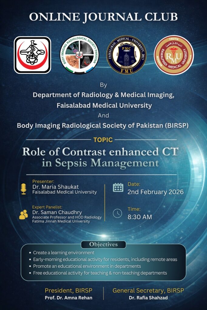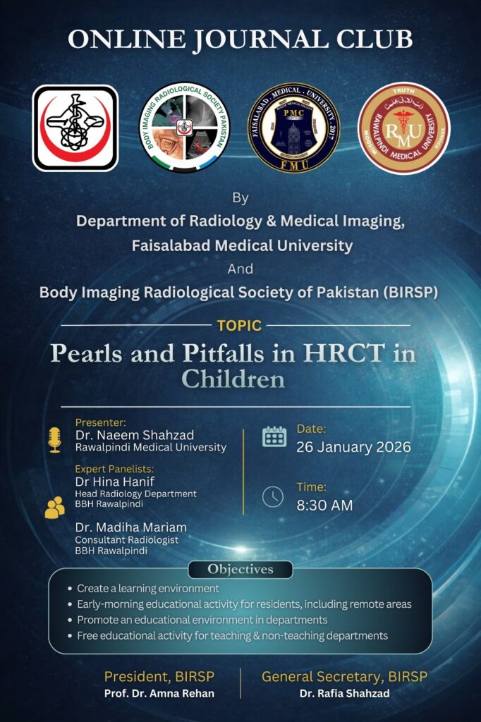 It is an honour to serve as President of the Body Imaging and Radiology Society of Pakistan (BIRSP). I am proud to lead a growing community of radiologists united by a shared vision of excellence in imaging, lifelong learning, and better patient care.